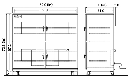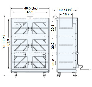 | Accessories Included | 5 Selves, Locks, RH Meter, Casters, & Adjuster |
