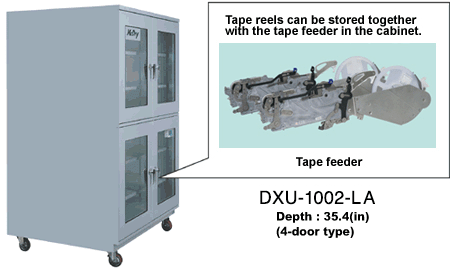 Storage cabinet for tape feeder with reel