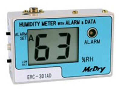 Hygrometer with alarm. The alarm light will flash and alarm will sound when the humidity level goes over the set parameters.